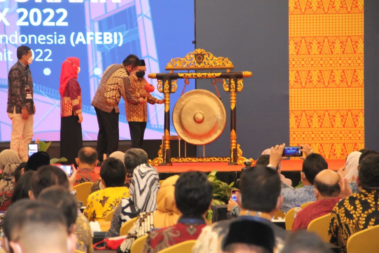 Peresmian Pembukaan Sidang Pleno XIX Asosiasi Fakultas Bisnis dan Ekonomi (AFEBI) dan Halal Summit 2022, diselenggarakan di hari ke-2 kunker, Rabu (7/9) di Hotel Wyndham, Palembang.