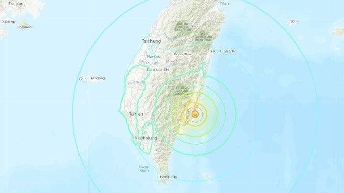 Gempa mengguncang pada pukul 14.44 waktu setempat, sekitar 50 kilometer utara kota Taitung di kedalaman 10 kilometer, menurut Survei Geologi Amerika Serikat (USGS).