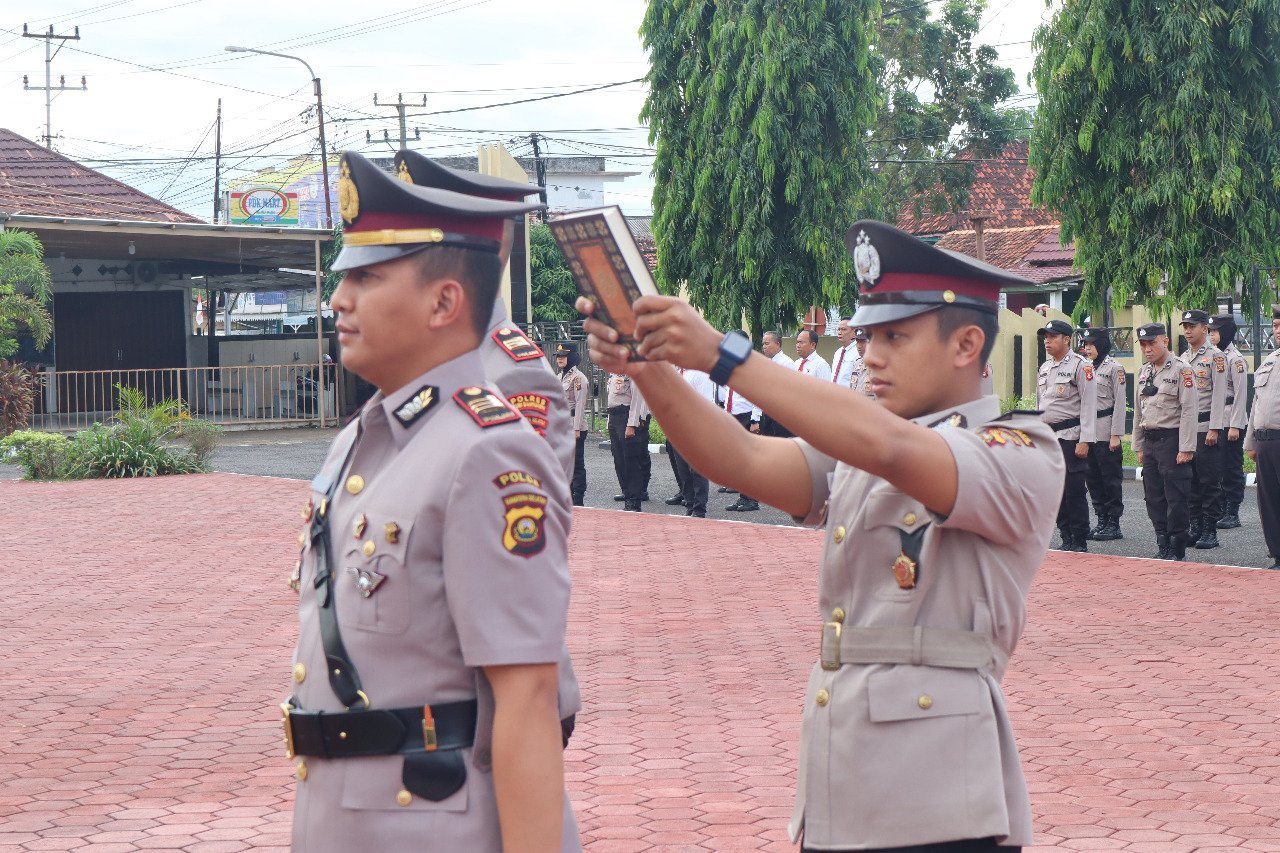 Serah terima jabatan berlangsung di halaman Mapolres muba yang dihadiri pejabat utama Polres Muba, para Kapolsek, dan personil Polres muba.
