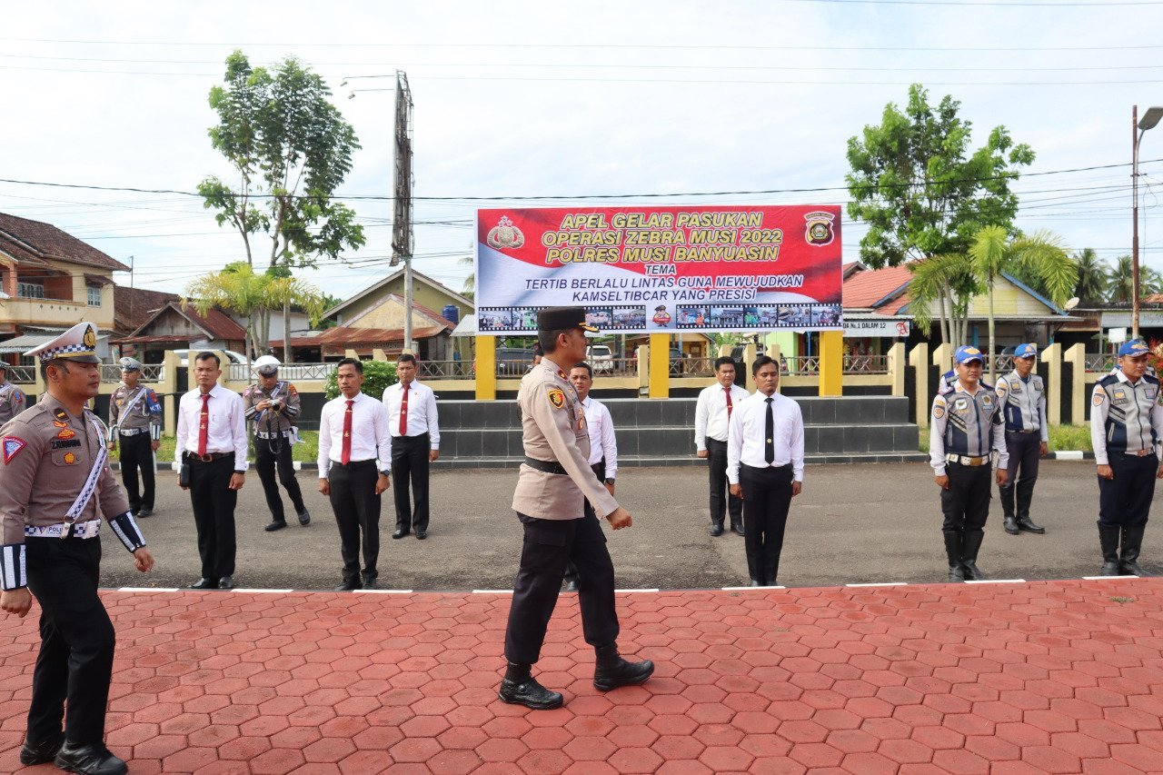 Krsumsel.com – Polres Musi Banyuasin menggelar apel gelar pasukan dalam rangka operasi bertajuk Zebra Musi 2022 pada Senin (3/10/2022).