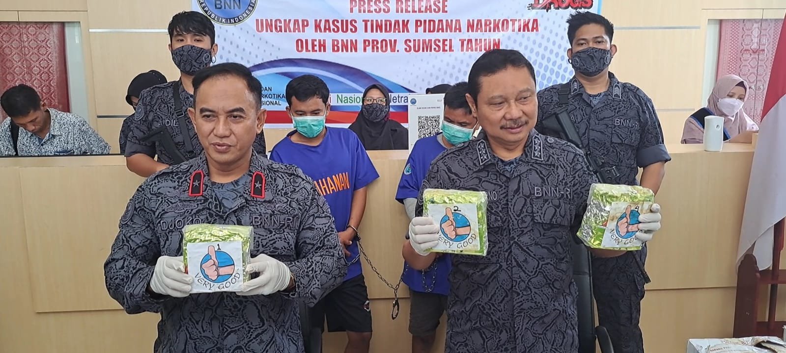 Kepala BNNP Sumsel Brigjen Pol Djoko Prihadi didamping Kabid Pemberantasan mengatakan, tertangkapnya kedua pelaku berawal dari adanya informasi masyarakat terkait adanya pengiriman narkotika sabu.