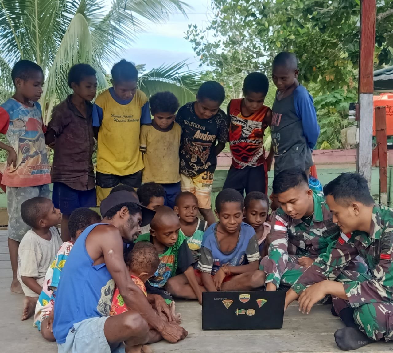 Krsumsel.com – Dalam rangka memberikan pengetahuan tentang teknologi dan informatika, Personel Satgas Yonif 126/KC Pos Kalilapar memperkenalkan cara menggunakan Laptop kepada anak-anak perbatasan di Kampung Kalilapar II, Distrik Waris, Kabupaten Keerom.