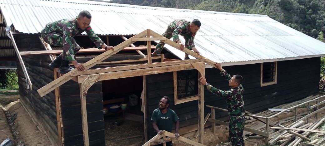 Krsumsel.com – Demi mewujudkan rasa nyaman untuk masyarakat dalam melaksanakan ibadah minggu, Satgas Yonif Mekanis 203/AK bersama masyarakat melaksanakan karya bhakti memperbaiki Gereja Gumban Hidup, Distrik Malagayneri, Kabupaten Lanny Jaya, Papua, Selasa (11/10/2022).