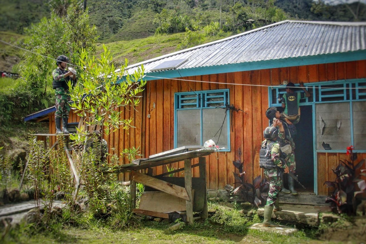 Krsumsel.com – Satgas Yonif Raider 321 GT/13/1 Kostrad memasang instalasi listrik dan lampu penerangan di rumah Bapak Amis Humage (56), dan Ole Humage (41) warga Kampung Mbua, Distrik Mbua, Kabupaten Nduga Papua.