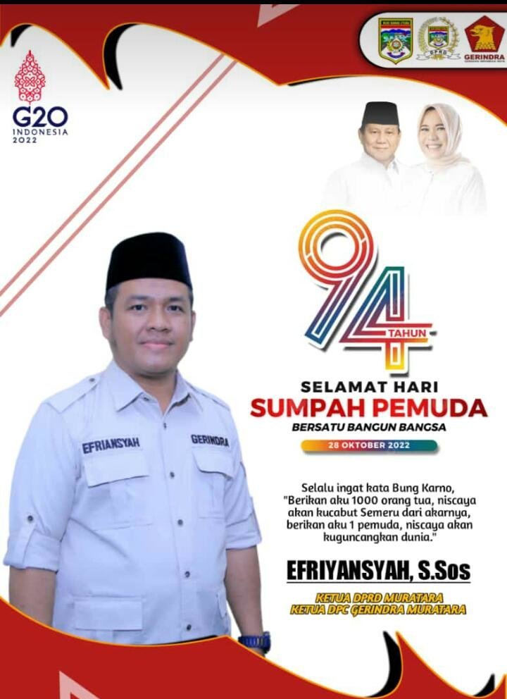 Krsumsel.com – Ketua Dprd Kabupaten Muratara Efriyansyah menegaskan Pemuda merupakan garda terdepan. Dalam pembangunan, khususnya dimuratara umumnya NKRI. Jum’at 28 oktober 2022