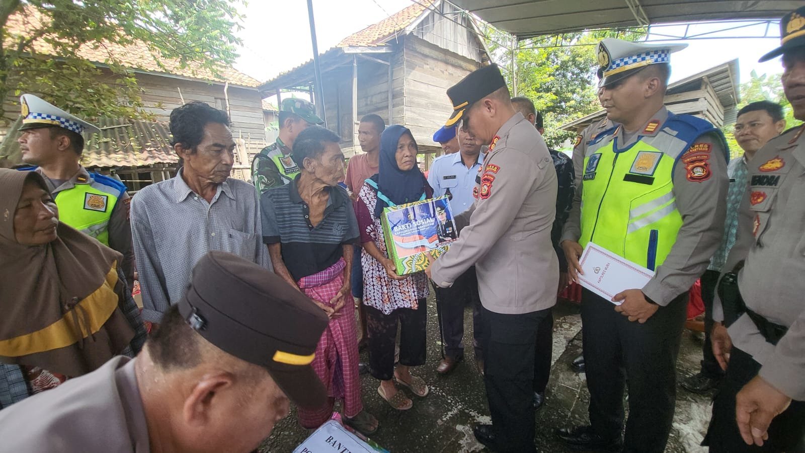 Sebagai bentuk keperdulian kepada sesama Kapolres memberi bantuan berupa sembako dan uang kepada para korban musibah kebakaran yaitu sdr Rojak, Roida,Konim, Husna dan Rastoni.