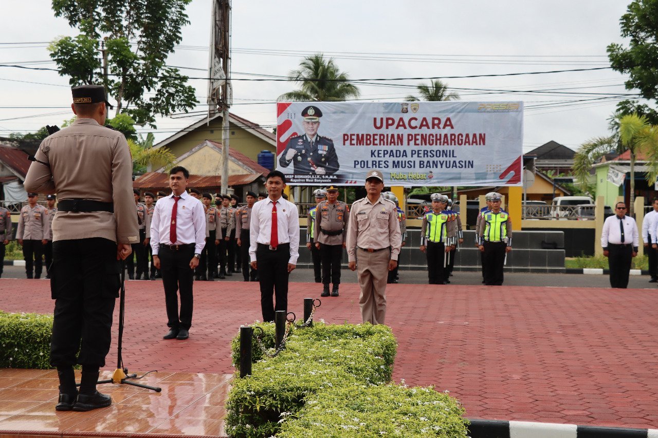 Ada 32 personil yang mendapatkan penghargaan hari ini Minggu pertama bulan November 2022, yaitu Kompol Rivow Lapu SE. Sik Kabag Ops polres Muba bersama 11 (sebelas) personil lainnya dalam Kategori terbaik dua produktifitas ungkap TO dan non TO dalam rangka Ops Sikat Musi II tahun 2022 , Kompol Arkamil Kabagren polres Muba bersama lima personil lainnya terbaik dua dalam penilaian evaluasi AKIP dengan nilai 81,32 kategori A Tahun anggaran 2022 sejajaran Polda Sumsel, dan AKP . Suvenfri SH Kapolsek Sekayu bersama lima belas personil lainnya terbaik satu dalam Ops sikat Musi II tahun 2022 sejajaran polres Muba.