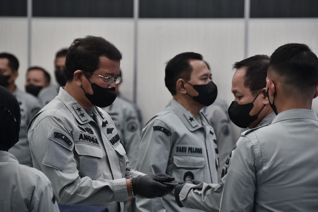Krsumsel.com – Kepala Bakamla RI Laksdya TNI Dr. Aan Kurnia menerima laporan penyerahan jabatan Deputi Bidang Informasi, Hukum dan Kerja Sama (Inhuker) Laksda Bakamla Drs. I Putu Arya Angga S dan kenaikan pangkat satu tingkat lebih tinggi Direktur Litbang Kamla Laksma Bakamla Daru Prajogo di Aula II, Mabes Bakamla, kemarin.