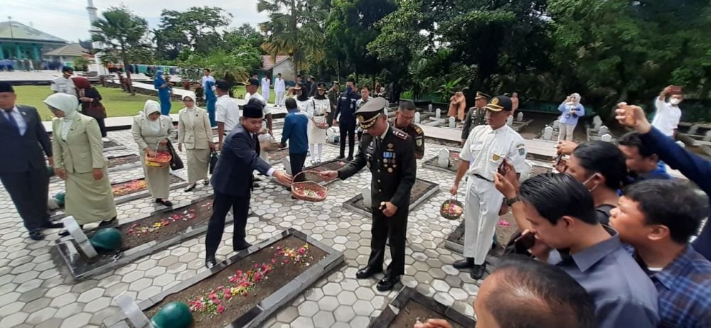 Krsumsel.com – Dalam rangka promosi Hari Pahlawan Tahun 2022. Pj Bupati Muara Enim Kurniawan AP bersama Dandim 0404 Muara Enim melakukan tabur bunga di Taman Makam Pahlawan Kesatria Muara Enim Rumah Tumbuh, pada Kamis (10/11/2022).