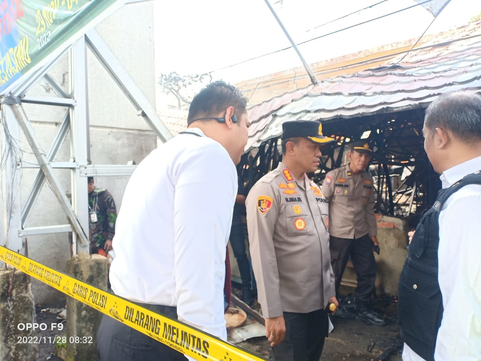 Krsumsel.com – Kapolrestabes Palembang Kombes Pol Mokhamad Ngajib didampingi Kasat Reskrim Kompol Haris Dinzah meninjau lokasi Pasar Cinde Palembang yang terbakar, Senin (28/11/2022) pagi.