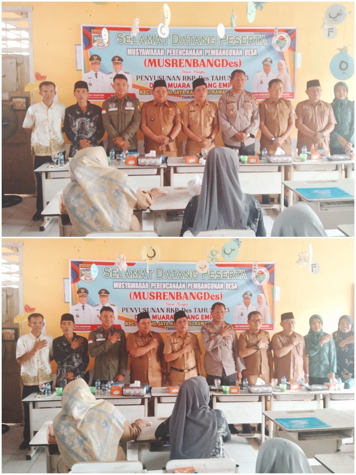 Kegiatan Musrenbangdes ini dihadiri Camat , Pendamping Desa dan Kepala Sekolah, Dinas PMD-P3A, Pendamping Desa, Kapolsek, bidan desa kesehatan.