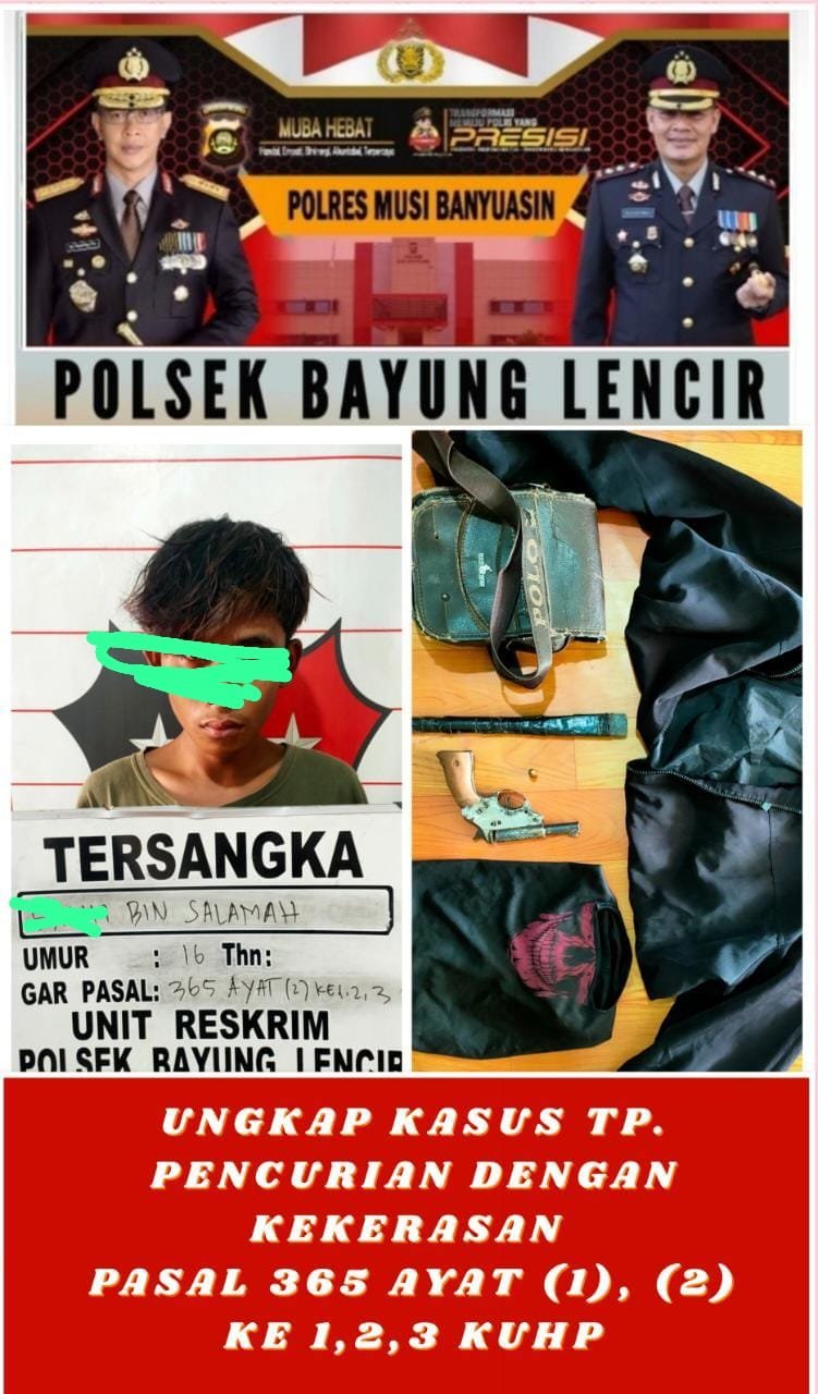 Remaja berinisial SA (16) itu pun tertunduk lesu. Setelah ditangkap Tim Opsnal Tekab 204 Polsek Bayung Lencir Polres Muba Polda Sumsel kurang dari 6 jam setelah beraksi.