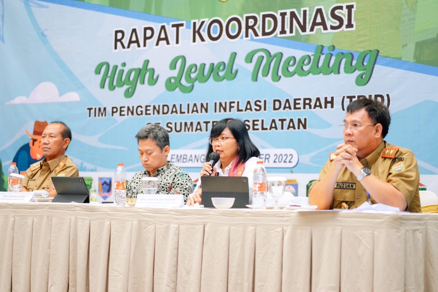 Asisten Ekonomi Keuangan dan Pembangunan Sekda Provinsi Sumsel, H. Darma Budhi, S.H., S.T., M.T, dalam arahannya menghimbau kepada Pemerintah Daerah Kabupaten/Kota untuk mewaspadai dan mengendalikan inflasi jelang HBKN Nataru melalui strategi 4K, yaitu Ketersediaan pasokan, Keterjangkauan harga, Kelancaran distribusi, dan Komunikasi yang efektif. Hal ini sebagai upaya untuk menekan laju inflasi agar tidak terlalu jauh dari target yang telah ditetapkan oleh pemerintah pusat yakni sebesar 3,0±1%.