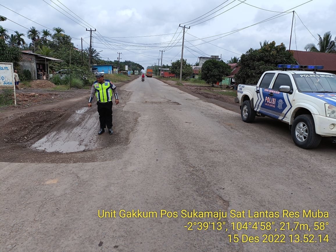 Krsumsel.com – Menjelang libur Natal dan Tahun Baru 2023. Satuan Lalu Lintas (Sat Lantas) Polres Muba Polda Sumsel melakukan pengecekan jalan-jalan rusak yang berada di wilayah Jalan Lintas Timur (Jalintim) Sumatera, Kamis (15/12/2022).