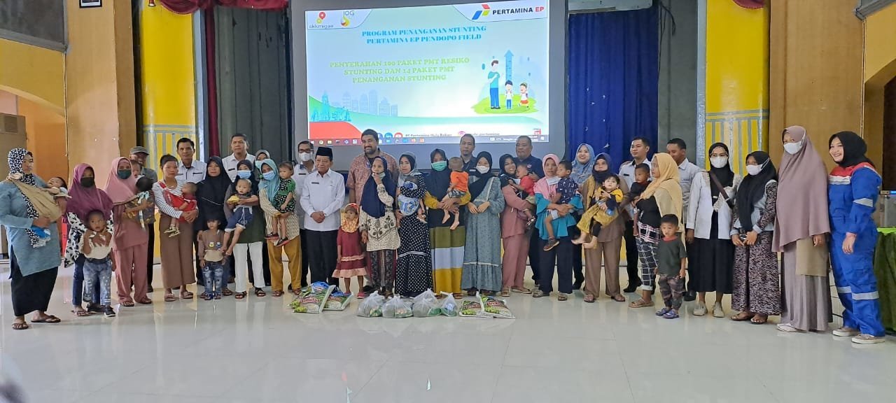 “Hari ini PT Pertamina Hulu Rokan Region 1 Zona 4 Pendopo Field peduli stunting, Dinas Kesehatan dan DP3AKKB berkolaborasi untuk penanganan kasus gizi buruk, kini kasus gizi buruk berdasarkan hasil penimbangan pada Desember 2022 tercatat sebanyak 14 orang stunting dan 100 orang beresiko untuk stunting, melalui implementasi program CSR bidang kesehatan.” Katanya menjelaskan.