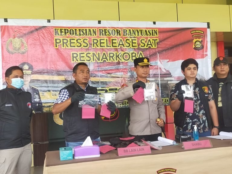 Kapolres Banyuasin, Imam Syafi’i. S.ik,M.Si Mengatakan ” pada hari ini kami dari polres Banyuasin mengadakan press release kasus penyalahgunaan narkoba yang terjadi di wilayah hukum Kecamatan Betung, Dalam hal ini mengamankan 1 tersangka Bandar Narkoba”. Katanya