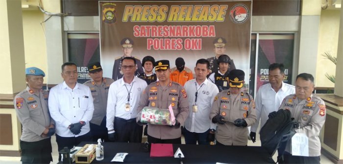 Kapolres OKI AKBP Dili Yanto didampingi Kasat Res Narkoba AKP Najamudin dan Kanit Idik II IPDA Jamal mengatakan, tertangkapnya kurir narkotika ini berawal dari informasi yang didapat oleh Satresnarkoba Polres OKI.