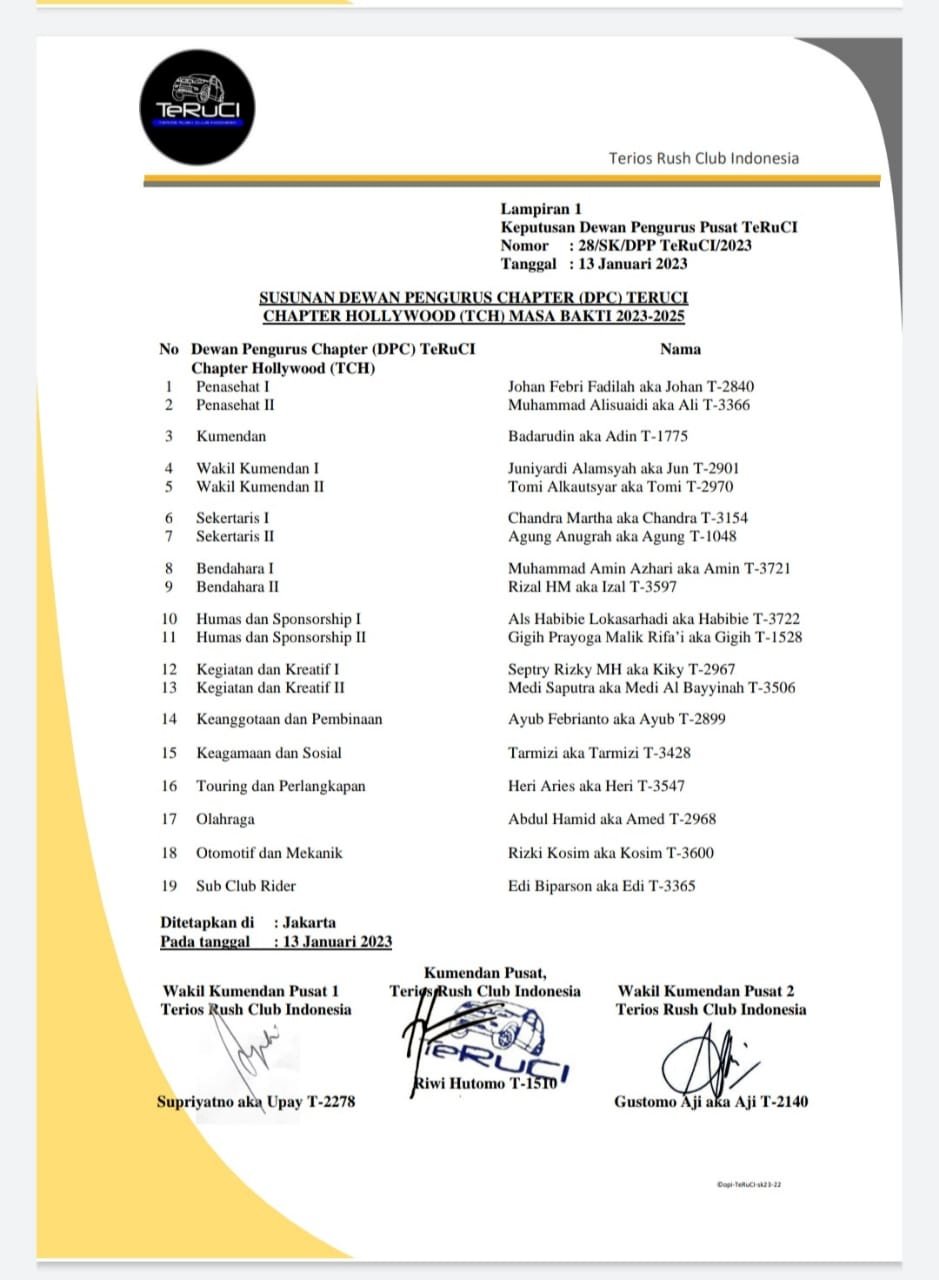 Ditambahkan Om Adin, dirinya mengucapkan terima kasih kepada semua yang telah hadir dalam acara Anniv TeRuCI Chapter Hollywood yang kedua ini, apabila ada kesalahan dalam penempatan atau ada kekurangan dirinya menghaturkan permohonan maaf.