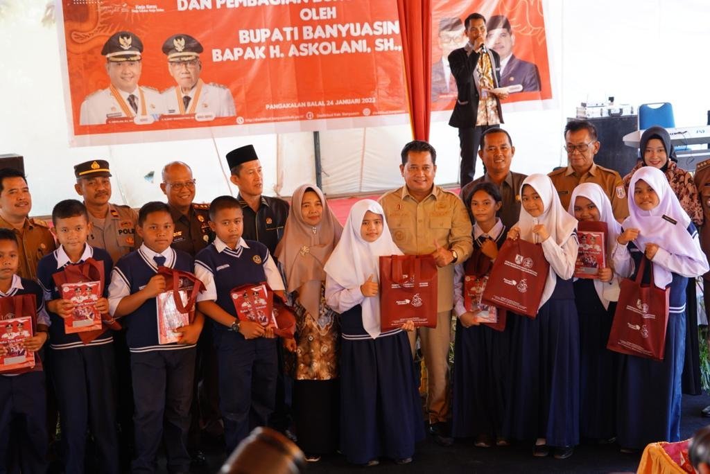 Krsumsel.com – Bupati Banyuasin H.Askolani menghadiri peresmian gedung Sekolah Menengah Pertama (SMP) Banyuasin III dan Penyerahan Buku Tulis Siswa (24/01/2023). Peresmian gedung ini ditandai dengan penandatanganan prasasti dan pemotongan pita oleh Bupati Banyuasin H.Askolani didampingi dengan Ketua DPRD Banyuasin Irian Setiawan, Kejari Banyuasin Agus Widodo, PJ Sekda Banyuasin Hasmi, Anggota DPRD Nopri, Para Kepala OPD dan tamu undangan lainya.