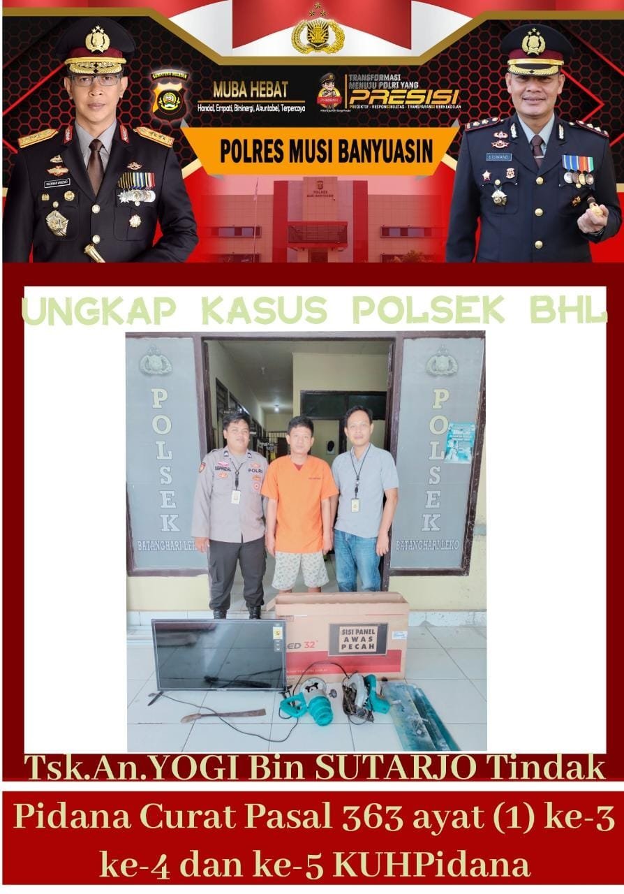 Kapolres Muba AKBP Siswandi, SIK, SH, MH melalui Kapolsek BHL Iptu Moga Gumilang, SIK kepada awak media, Kamis (26/01/2023) mengatakan. Setelah menerima laporan korban Arni. Selanjutnya, kami melakukan serangkaian penyelidikan dan penyidikan. Alhasil, tersangka Yogi berhasil kita tangkap pada, Selasa (24/01/2023).