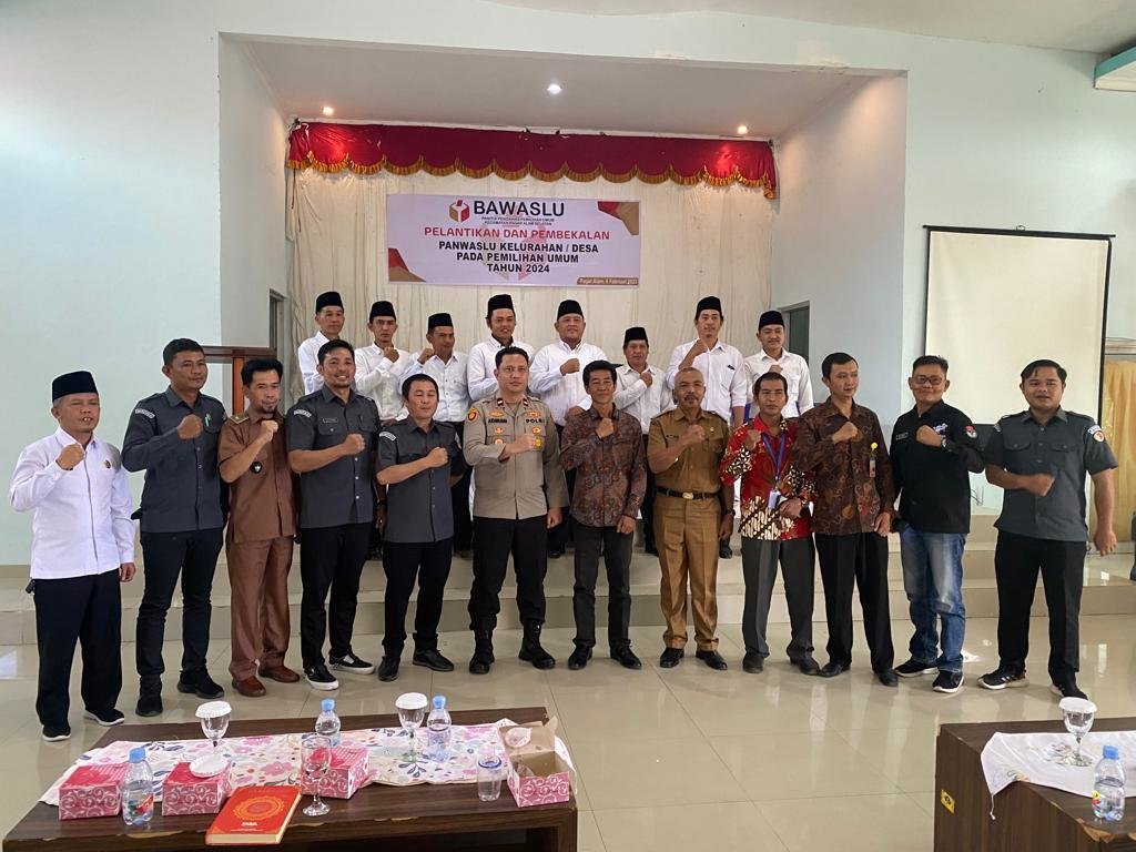 Perwakilan Bawaslu Kota Pagaralam Rumi Sanjaya, Komisioner Panwascam Pagaralam Selatan, Ulan Muzaki, Yusi Hariadi,Andi Destiawan, Sekretaris Panwascam Pagaralam Selatan dan sekaligus Ketua Pelaksana Pelantikan Deky Zulkarnain, Lurah Di 8 kelurahan Se-Pagaralam Selatan PPK KPU Pagaralam Selatan