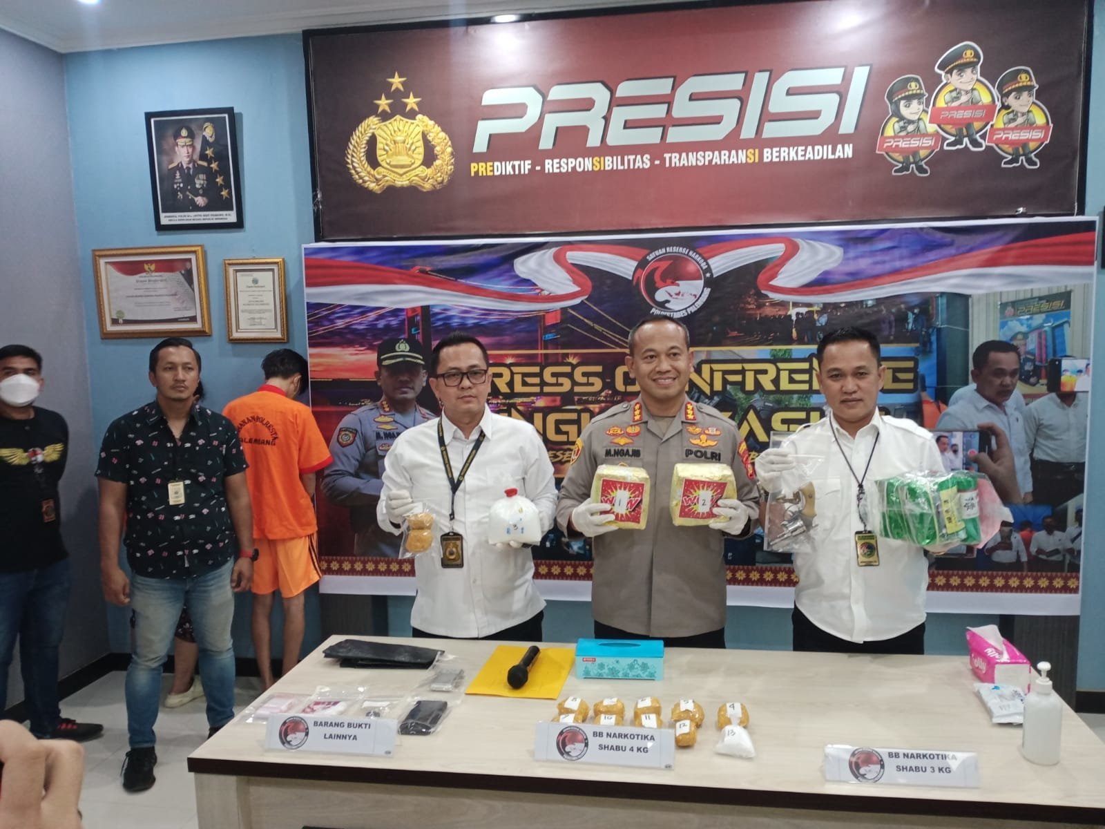 Ngajib menjelaskan, setelah menangkap tersangka HR pihaknya pun melakukan pengembangan hingga menangkap tersangka wanita berinisial NS. Dari tangan tersangka ditemukan sabu seberar 4 kilogram.