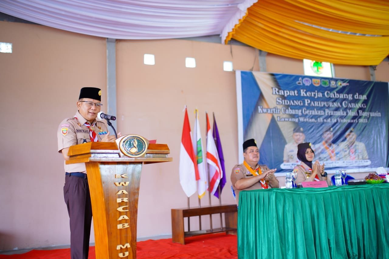 Krsumsel.com – Pj Sekda Musi Banyuasin Musni Wijaya SSos MSi selaku Ketua Kwartir Cabang Gerakan Pramuka Kabupaten Muba, membuka secara resmi Rapat Kerja Cabang (RAKERCAB) dan Sidang Paripurna Cabang (SIDPARCAB) Kwartir Cabang Gerakan Pramuka Musi Banyuasin Tahun 2023.