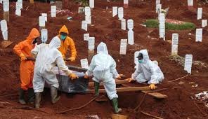 Suasana haru saat mendoakan sanak saudara yang telah meninggal akibat paparan virus tersebut terasa dari pagi hingga siang hari, seperti pada salah satu peziarah yakni Tommy.