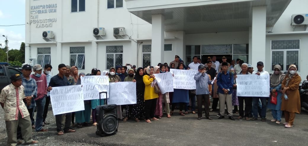 Krsumsel.com – Puluhan masyarakat Desa Cintajaya dan Pedamaran melakukan unjuk rasa di Dinas Koperasi UKM dan Perindustrian Kabupaten Ogan Komering Ilir (OKI), Senin (20/3/2023).