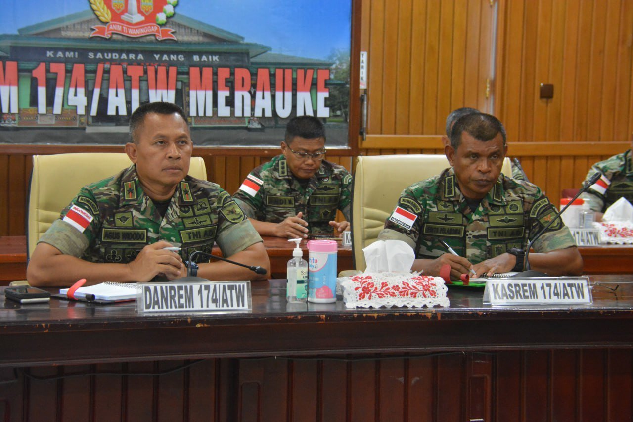 Dalam arahannya, Danrem 174 Merauke memberikan penekanan kepada para Dansat dan Dansatgas dalam melaksanakan tugas pokok Korem 174/ATW selaku Komando Utama Pembinaan (Kotamabin) dan sebagai Komado Pelaksana Operasi (Kolakops).
