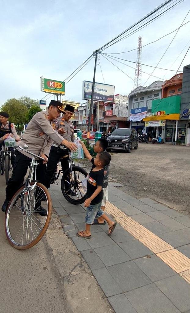 Terpantau disela-sela perjalanan Kapolres Muba dan rombongan bersepeda, juga menyempatkan diri berbagi takjil kepada warga.