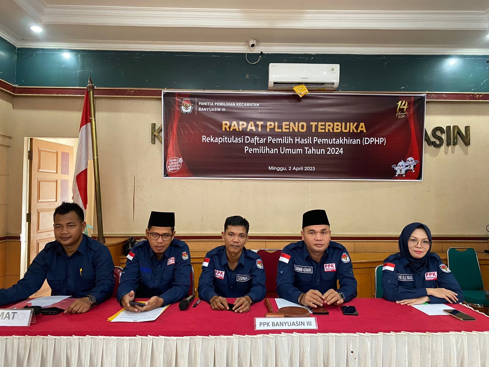 Krsumsel.com – Panitia Pemilihan Kecamatan (PPK) Banyuasin III menggelar rapat pleno pada Minggu, (02/04/2023) . Rapat tersebut terkait Rapat Pleno Terbuka Rekapitulasi Daftar Pemilih Hasil Pemutakhiran (DPHP) Pemilihan Umum Tahun 2024.