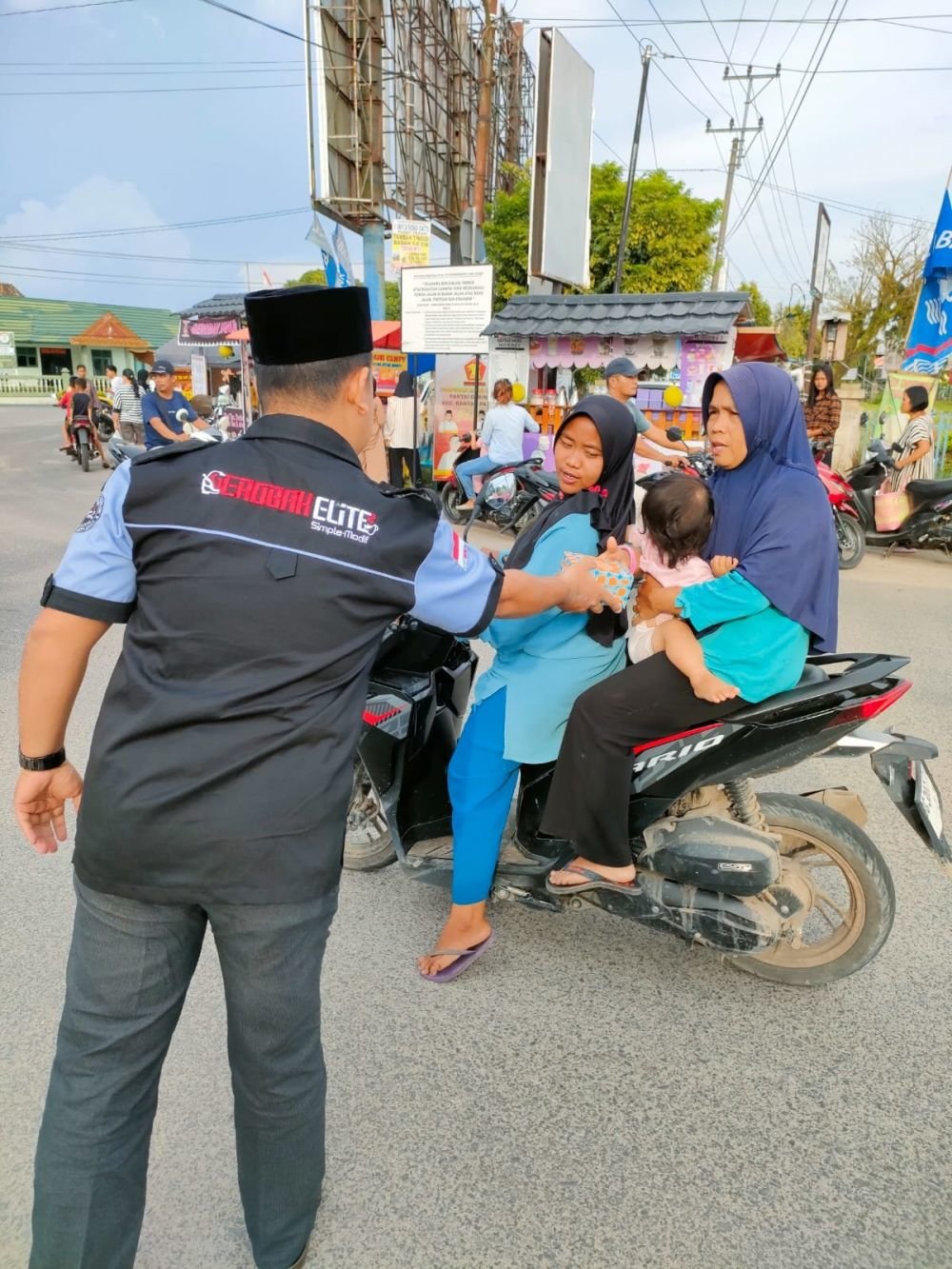 Krsumsel.com – Dipenghujung Ramadhan 1444 Hijriah, Komunitas Gerobak Elite Simple Modif (Geralite) Chapter Ogan Komering Ilir (OKI) dan Ogan Ilir (OI) melaksanakan bakti sosial (baksos) dengan membagikan takjil, Jum’at (14/4/2023).