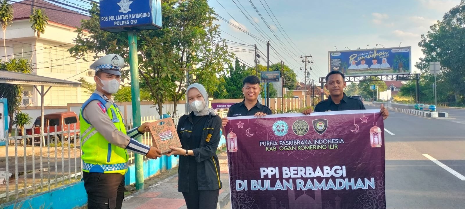 “Kegiatan ini sebagai bentuk terimakasih kami kepada petugas polantas Polres OKI yang sudah membantu masyarakat untuk menertibkan lalulintas selama bulan Ramadan 1444 Hijriah ini,” kata Ketua PPI OKI, Ihsanul Amri SH didampingi Ketua pelaksana kegiatan PPI berbagi di bulan Ramadan Angga Triza SH pada Sabtu (15/4/2023) sore.