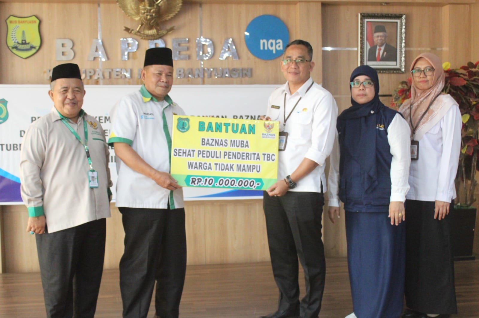Dikesempatan ini BAZNAS Muba menyerahkan bantuan Sehat Peduli Penderita TBC Warga tidak Mampu sebesar Rp 10 juta, dan penandatanganan kesepakatan bersama BAZNAS, Bank BRI Sekayu, kepala Puskesmas dan Perusahaan.