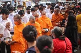 Dalam ritual tersebut, masyarakat berbaris di sepanjang jalan tanpa menggunakan alas kaki, kemudian para biksu berjalan dengan membawa sebuah mangkuk (pata) sebagai wadah untuk menyimpan sedekah dari umat Buddha.