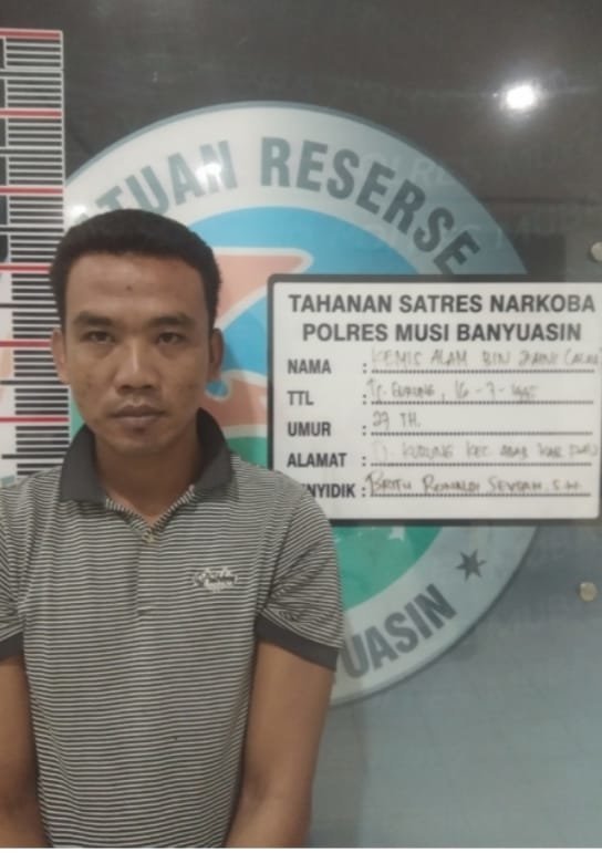 Kamis Alam (27) warga desa Tanjung Kurung kabupaten Pali yang bertempat tinggal di Desa Ulak Teberau Kecamatan Lawang Wetan, berhasil ditangkap oleh Satuan reserse narkoba polres Muba pada hari Rabu (07/06/2023), atas kepemilikan 13 paket diduga narkotika jenis sabu dengan berat bruto 5,11 gram.