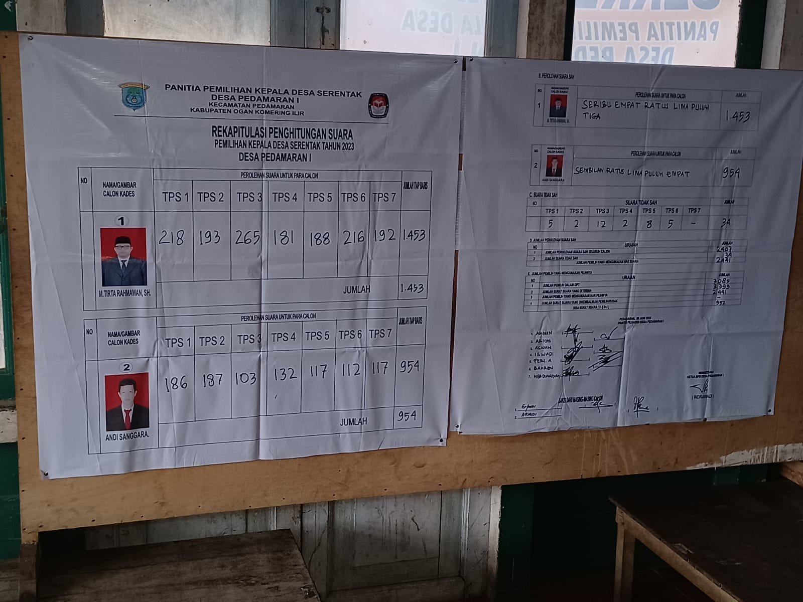 Data yang dihimpun dari 3085 pemilih, Tirta berhasil meraup suara sebanyak 1.453 suara dan incumbent hanya meraih 954 suara sedangkan 34 suara dinyatakan tidak sah serta sisanya tidak mengunakan hak pilihnya dengan unggul telak di semua TPS selisih 499 suara.
