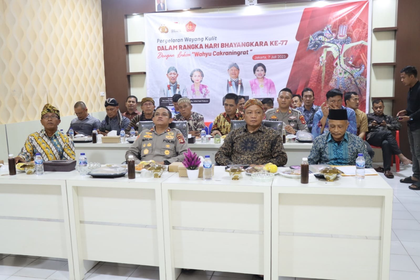 Nonton bareng wayang kulit ini diinisiasi oleh Mabes polri dalam rangka memeriahkan Hari Bhayangkara ke-77 dengan lakon ” Wahyu Cakraningrat” .