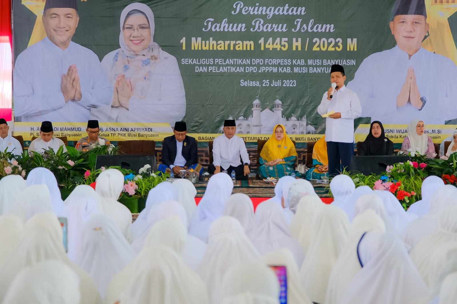Sementara, Kabag Kesra Muba H Opi Pahlopi MAg mengatakan, pada kesempatan ini peringatan Tahun Baru Islam 1 Muharram dilakukan dua pelantikan sekaligus yaitu, pelantikan dewan pengurus DPD FORPESS Kabupaten Muba