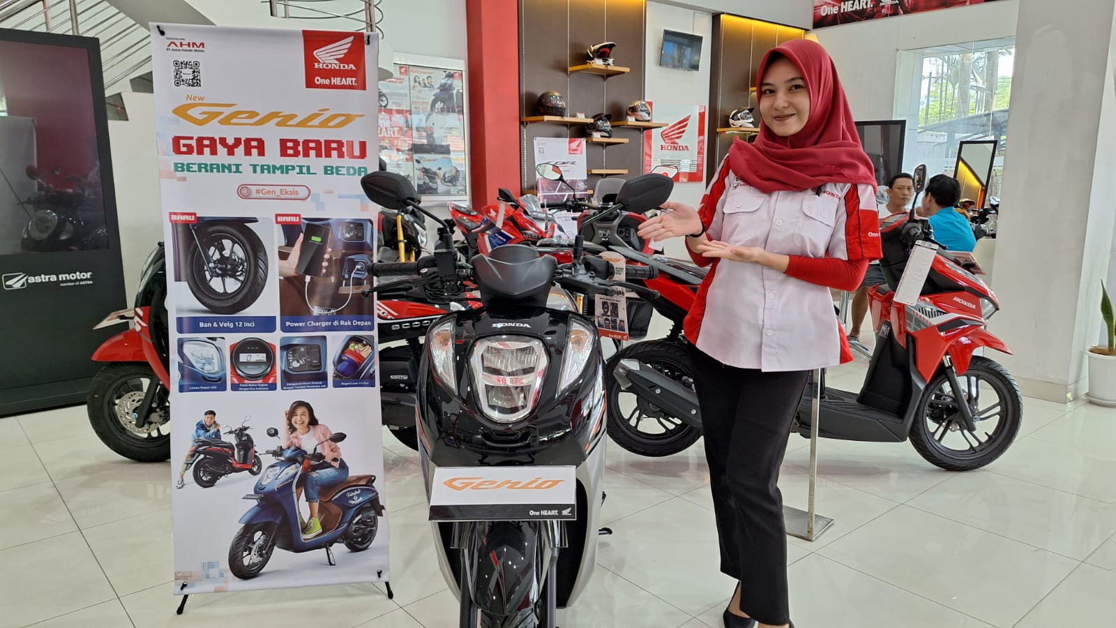 Menurutnya, tampilan ikonik New Honda Genio didukung dengan penggunaan ban berukuran 12 inci yang menghasilkan proporsi berkendara lebih seimbang dan stabil. Berbekal mesin 110cc yang irit bahan bakar, rangka eSAF (enhanced Smart Architecture Frame) berteknologi tinggi, serta fitur komplit fungsional seperti power charger pada rak depan, New Honda Genio menjawab keinginan konsumen untuk memiliki sepeda motor handal dan fungsional.