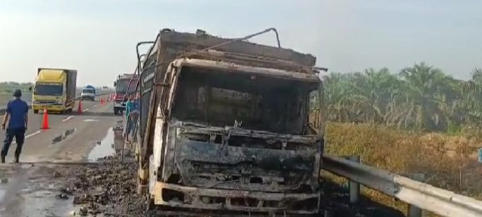 Kendaraan terbakar tersebut berupa truk ekspedisi jenis Fuso dari Jakarta nopol BA 8083 IA, dengan tujuan Kota Padang yang dikendarai Zulhendri (41) bersama keneknya Wahyudi (30), keduanya asal Kota Padang.