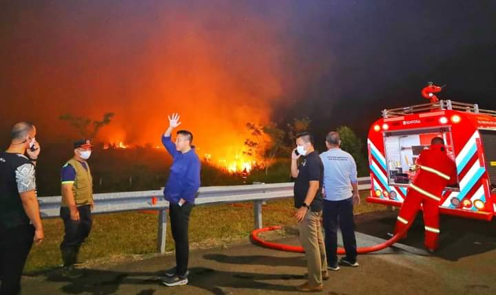 Saat melakukan inspeksi lapangan, personel dari berbagai intansi, seperti Manggala Akni, BPBD, Pemadam Kebakaran, Pol PP, MPA (Masyarakat Peduli Api) dan perwakilan dari Hutama Karya, telah berupaya keras untuk memadamkan api yang menjalar.