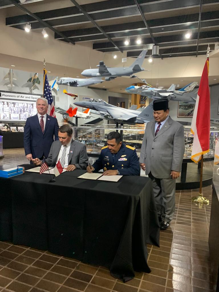 Dalam unggahan tersebut terlihat Menhan Prabowo turut menyaksikan penandatanganan MoU tersebut dan menyempatkan melihat unit pesawat tempur tersebut di kantor Boeing bersama pejabat Kemhan dan The Boeing Company.