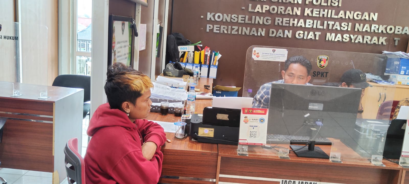 Kedatangannya ke Sentra Pelayanan Kepolisian Terpadu (SPKT) Polrestabes Palembang. demi mencari keberadaan anak dan istrinya.