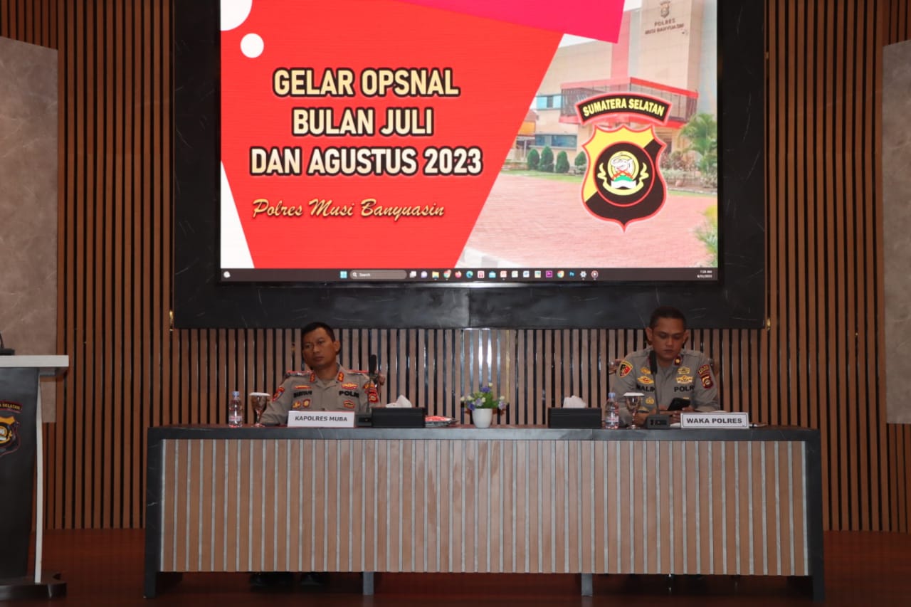 KRSUMSEL.com – Bertempat di aula Alex Noerdin. Kapolres Muba AKBP Imam Safii S. I. K Msi, Kamis (31/08/2023) memimpin acara Gelar Opsnal (GO) bulanan Polres Muba.