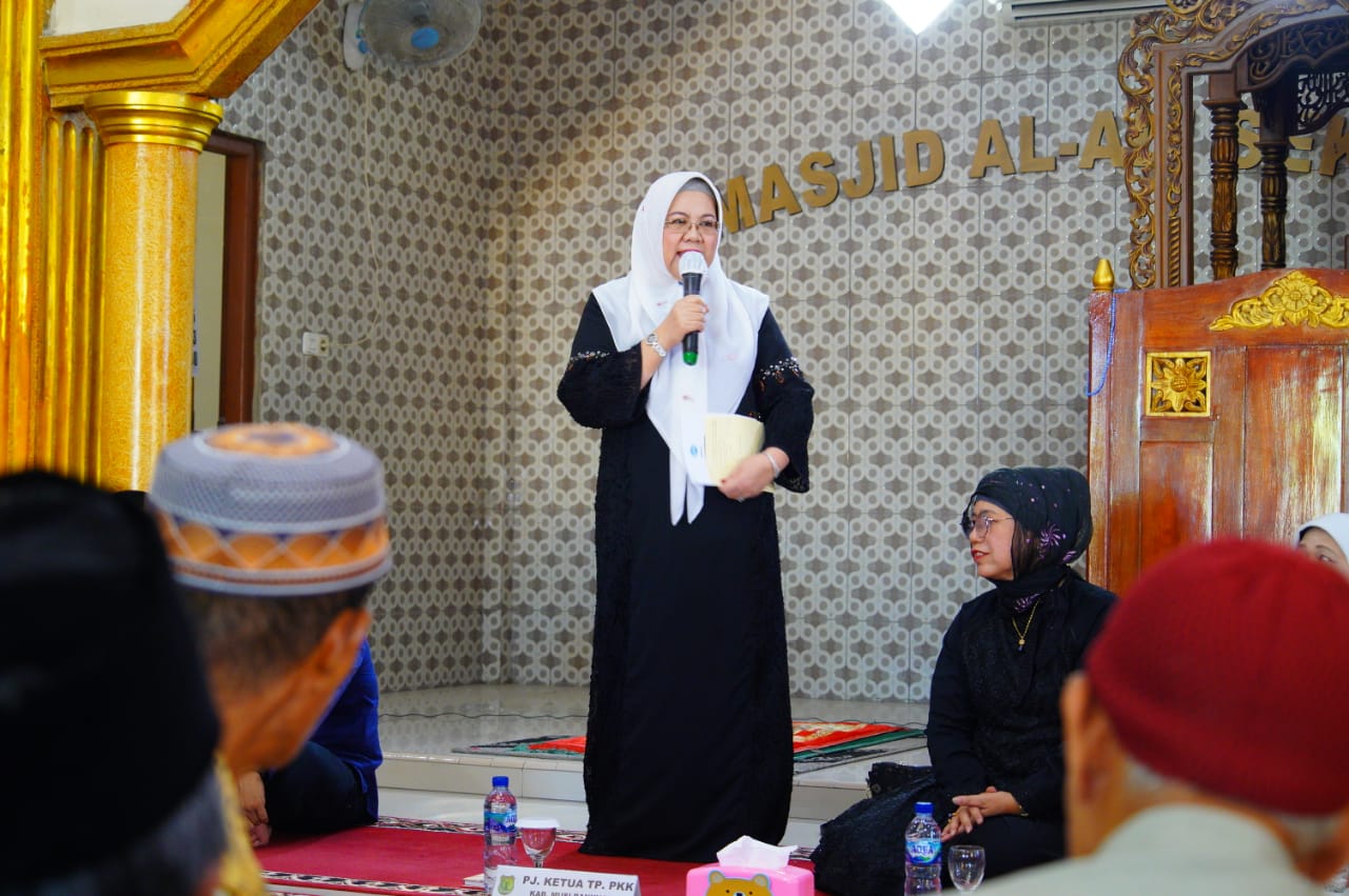 Penjabat Ketua Tim Penggerak (TP) PKK Kabupaten Musi Banyuasin Hj Asna Aini Apriyadi, dalam sambutannya mengatakan bahwa kegiatan seperti ini bukan hanya domain ibu ibu semata tapi juga sangat baik untk pengajian bapak bapak dan kaum laki laki untuk menambah keimanan dan ketaatan kepada Allah Swt. ‘Saya terimakasih sekali telah diundang menghadiri dalam acara mulia ini. Dan meminta kepada seluruh jamaah yang hadir untuk selalu rajin dan terus meluangkan waktunya dalam kegiatan rohani di masjid masjid seperti ini, semoga Allah SWT senantiasa memberikan petunjuk dan ridhonya kepada kita semua, ”ucapnya.