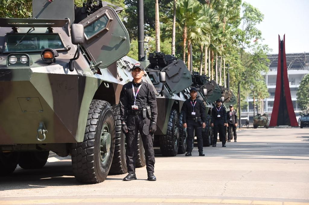 “Ancaman terorisme dan ancaman gangguan unjuk rasa, itu juga merupakan ancaman yang perlu kita antisipasi, namun sampai dengan saat ini ancaman-ancaman tersebut sudah kita antisipasi dan sejauh ini sampai hari kedua pelaksanaan KTT ASEAN, ancaman tersebut tidak terlalu signifikan dalam artian untuk terorisme pada saat ini tidak ada yang mengarah ke sana, kalau kegiatan unjuk rasa secara persuasif, keamanan sudah diantisipasi”. Jelas Pangkogabpadpam VVIP.