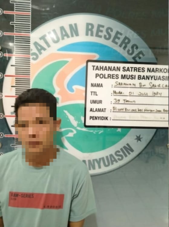 MUBA, KRSUMSEL.com – Sariawan (39) warga Mangunjaya kecamatan Babat Toman tak berkutik ketika diringkus oleh personil satuan reserse narkoba polres Muba pada hari Sabtu (16/09/2023) sekira pukul 22 wib di depan rumah kontrakan di Desa Bruge kecamatan Babat Toman.