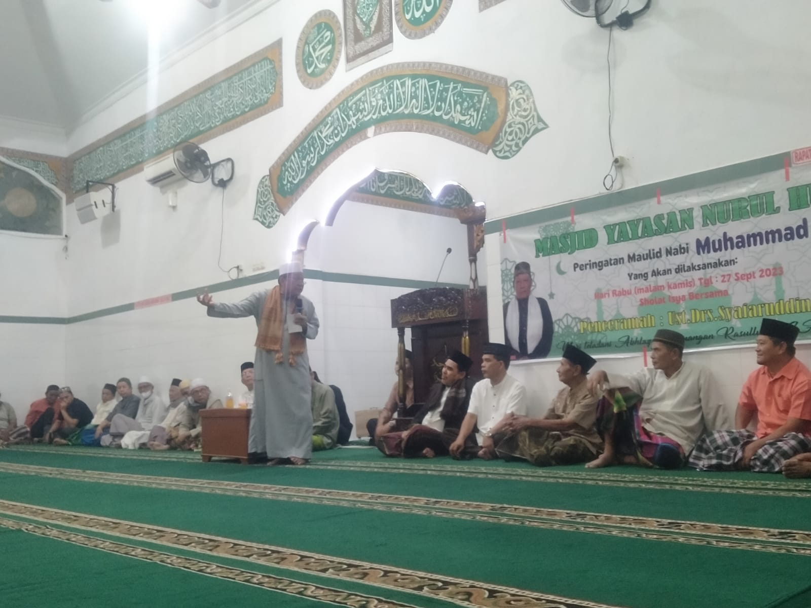 KRSumsel.com – Untuk memperingati Maulid Nabi Muhammad, Masjid Yayasan Nurul Huda yang berada di lorong Nurul Huda Jl. May. Salim Baru Bara Palembang, mengundang penceramah yaitu Ustadz Drs Syafaruddin yang dilakukan pada Hari Rabu (Malam Kamis), (27 September 2023) usai Sholat Isya bersama dengan masyarakat sekitar yang juga dihadir oleh beberapa RT dan RW kelurah Sekip Jaya, Kecamatan Kemuning, Palembang.